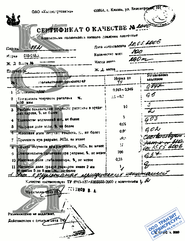 Главная >> Информация >> Каталог химии и нефтехимии >> Полимеры и сополимеры >> Паспорт качества