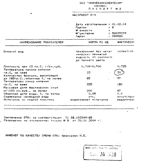 Главная >> Информация >> Каталог химии и нефтехимии >> Продукты нефтехимии >> Паспорт качества